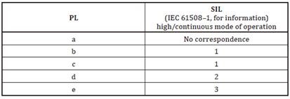 控制系統安全相關部件在預期條件下執行安全功能的能力分爲5級,稱之爲性能等級(PL)。這些性能等級由每小時發生危險失效的概率來定義。